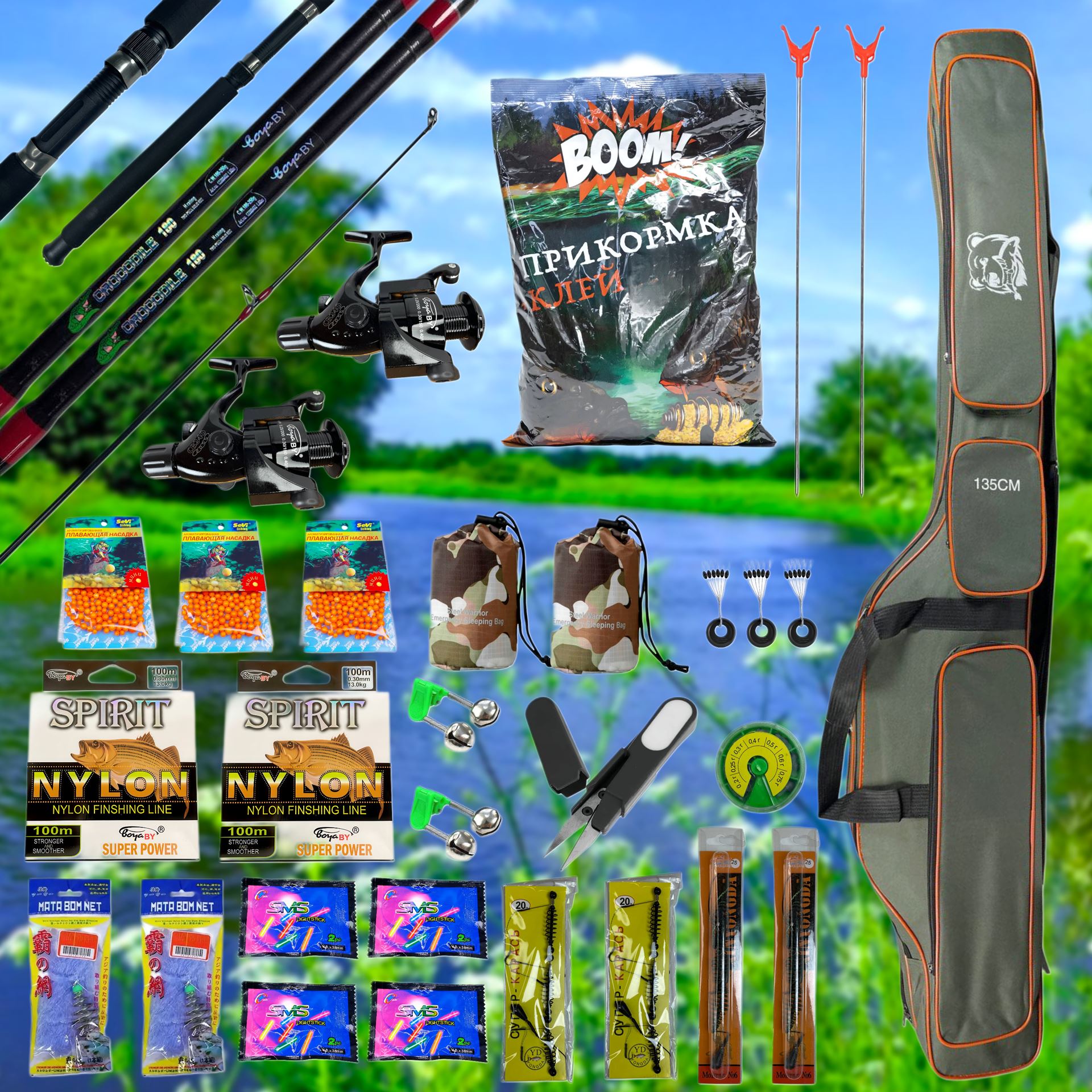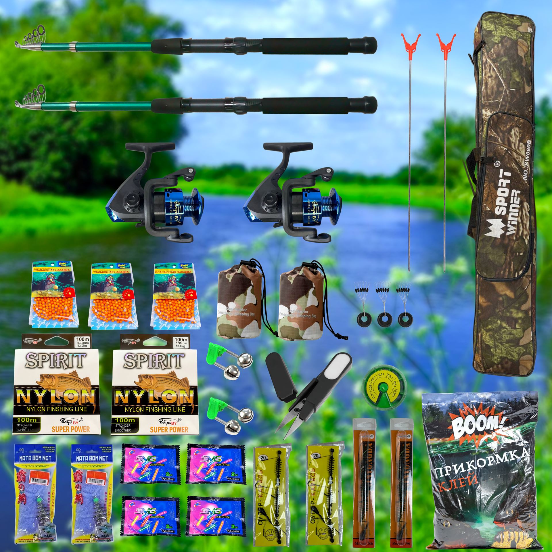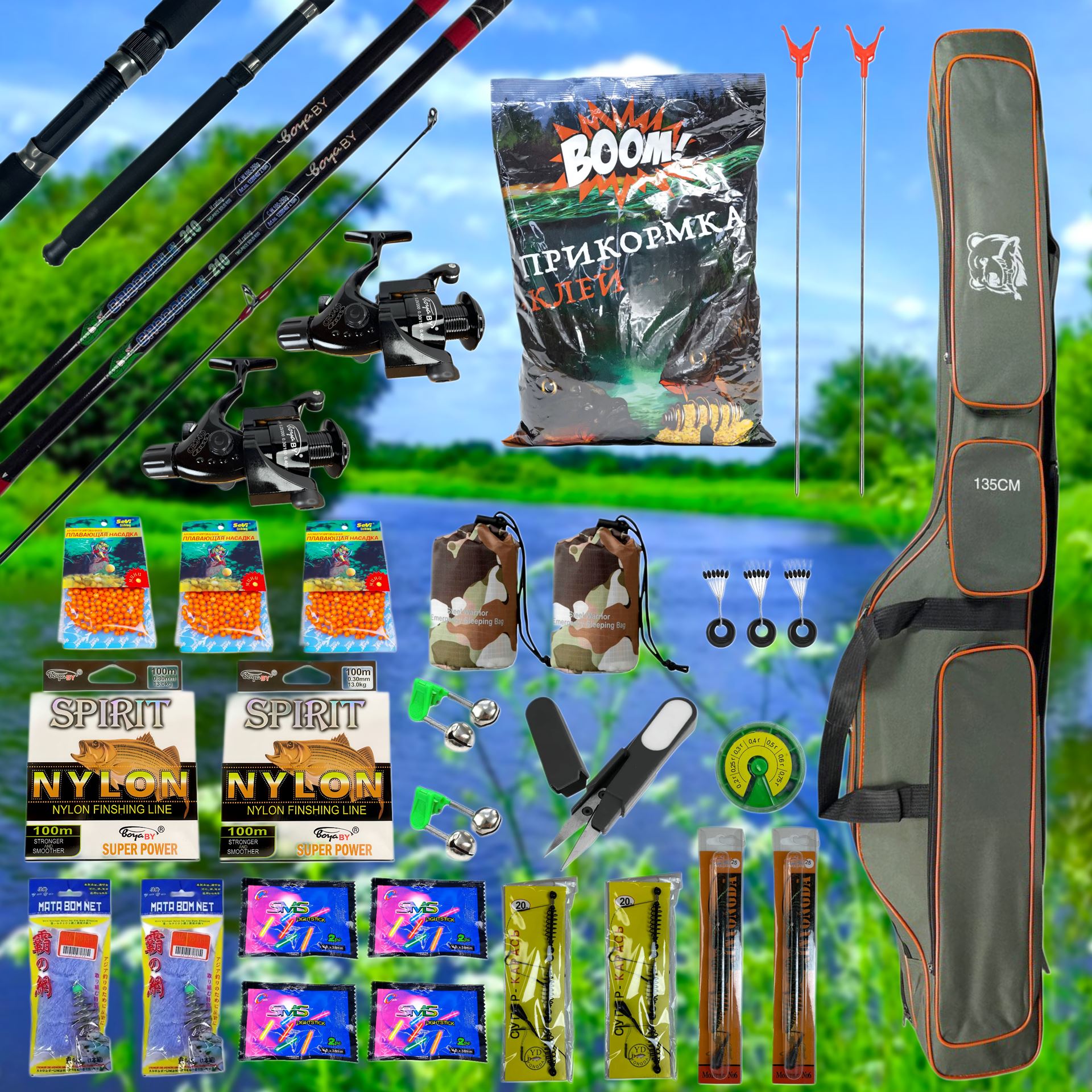 - ЗРУЧНІСТЬ — Всі снасті компактно складені у міцний камуфляжний чохол.